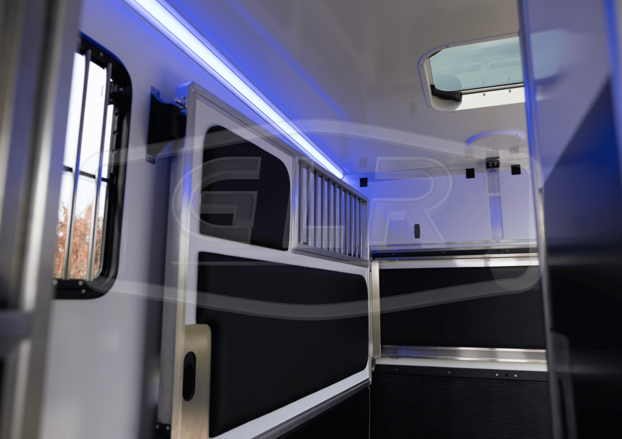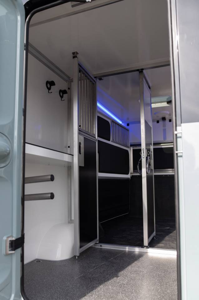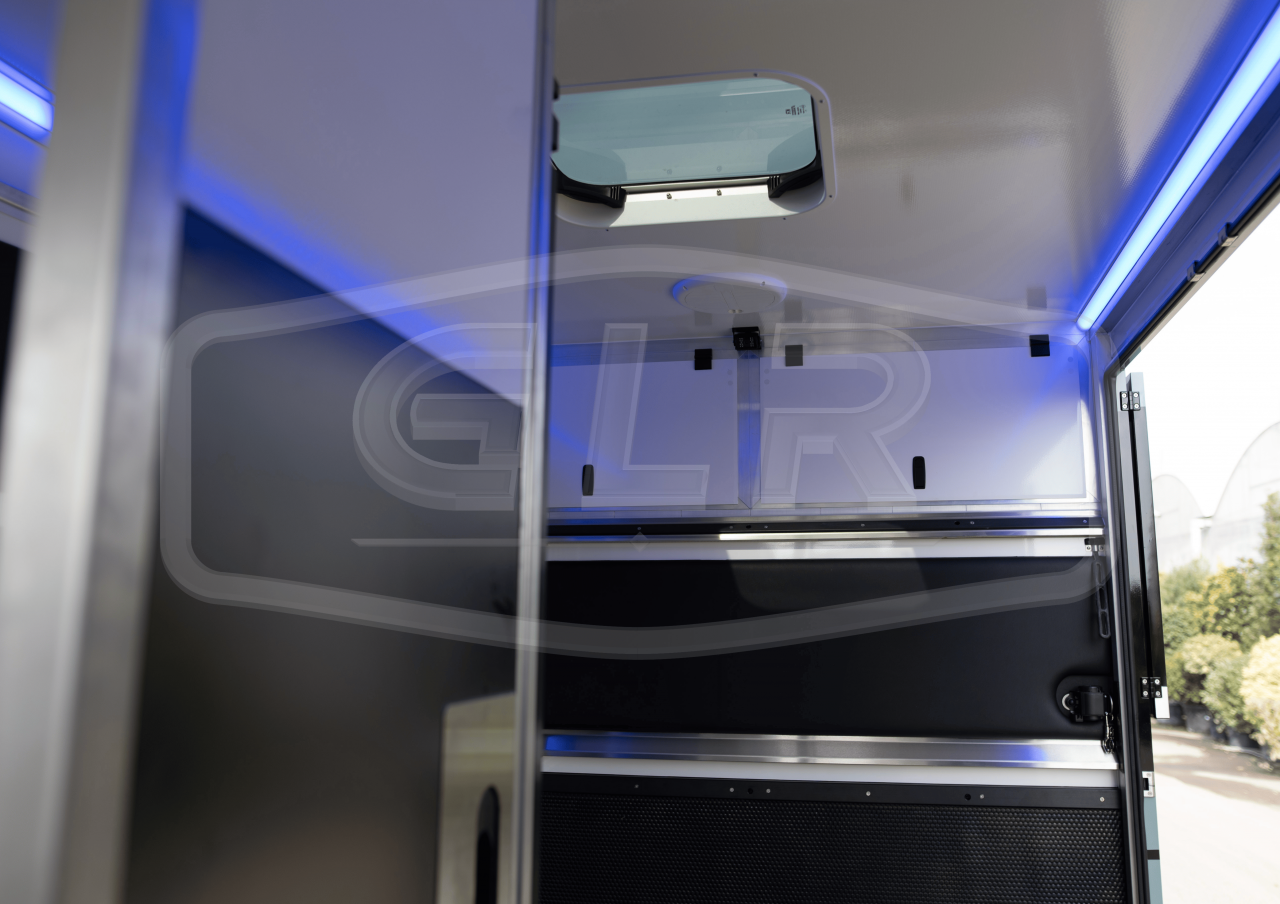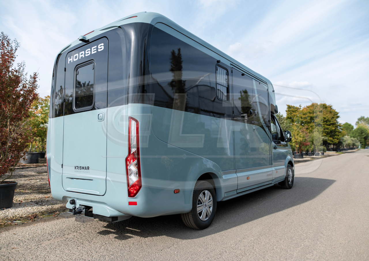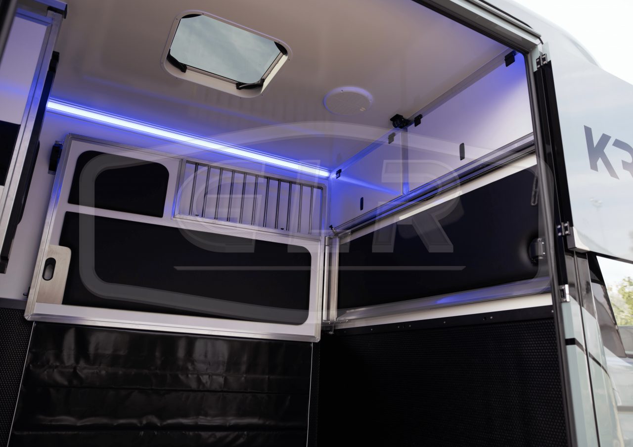 - Equipements de série : Partie chevaux stalle capitonnée, bas flanc coulissant, séparation de tête amovible, partie chevaux fermée avec 2 grandes portes cavaliers, grande sellerie équipée (porte-selles, étagères, et marche pied), baies coulissantes grillagées,aérations/extracteur d'air dans la partie chevaux , caméras de recul et de surveillance, attelage, capucine ...